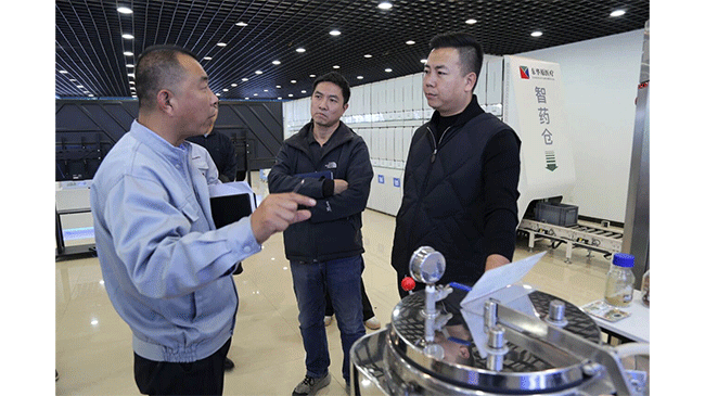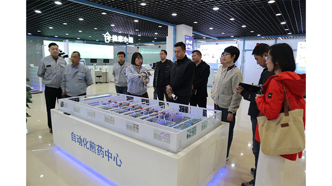 在自动化仓储区域,劳模工匠们重点关注物流输送系统规划设计,围绕PLM、U8、WMS等系统的高效集成与信息贯通展开现场探讨;在数智化机加工车间,一行人聚焦多品类、小批量生产环境下机器人灵活调度、小品种生产自动化推进等问题交换意见;在产品展厅,详细了解中医煎药设备、健康体检设备等创新成果。