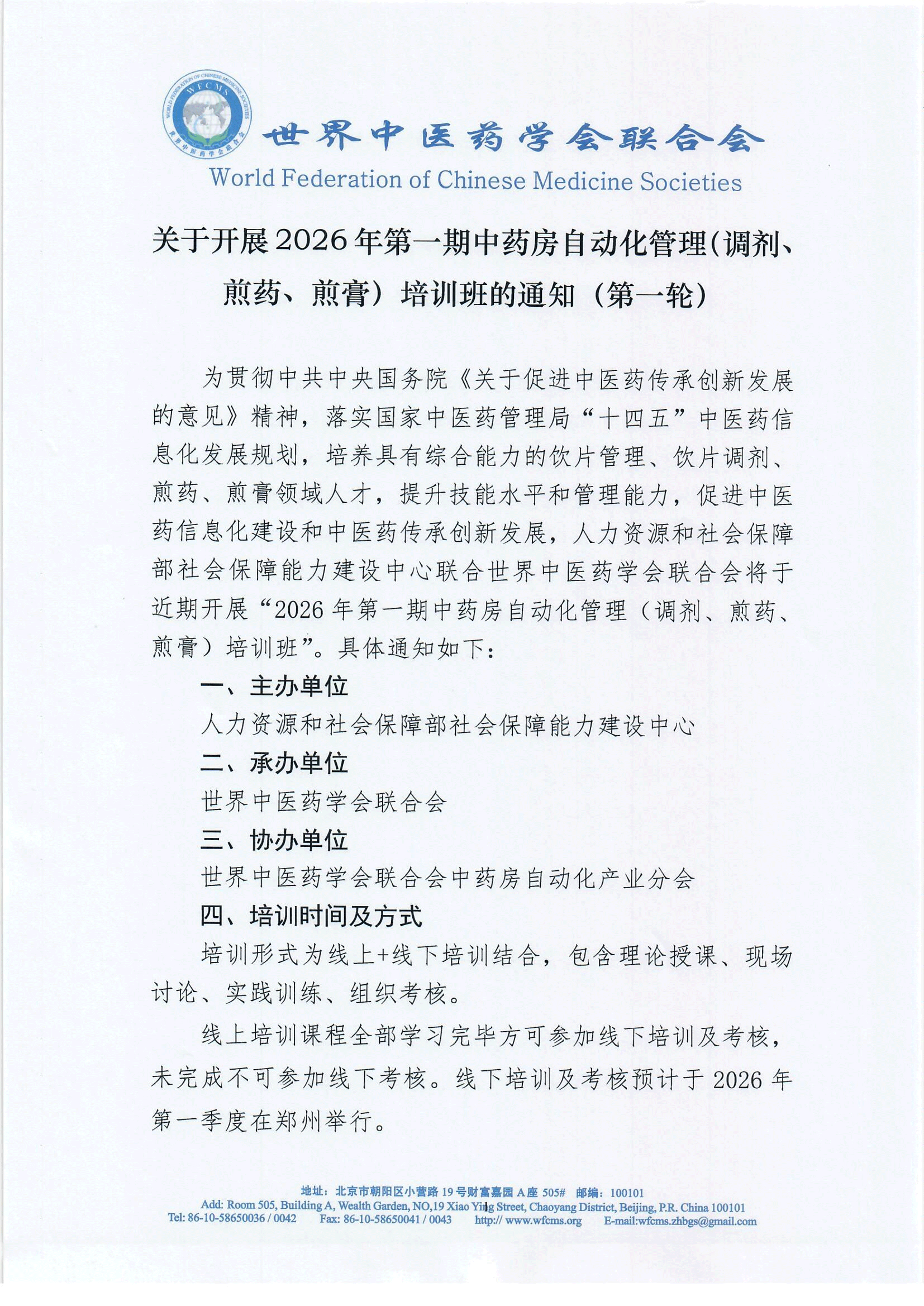 关于开展2026年第一期中药房自动化管理(调剂、煎药、煎膏)培训班的通知(第一轮)