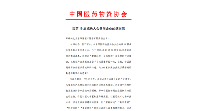 合作共赢 征程万里 | 中国医药物资协会致感谢信